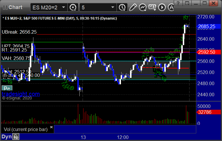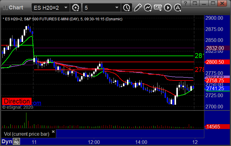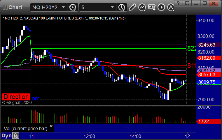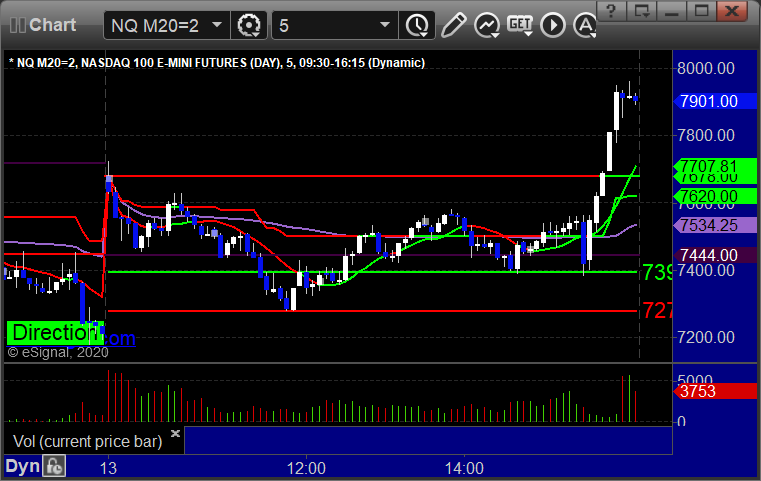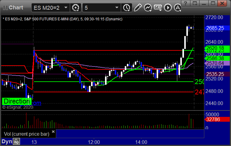 As usual, let's start by taking a look at the ES and NQ with our market directional lines, VWAP, and Comber on the 5-minute chart from today's session: