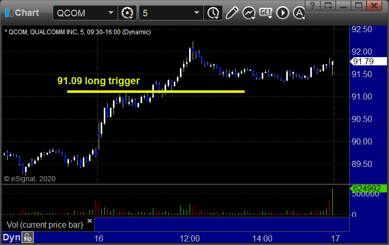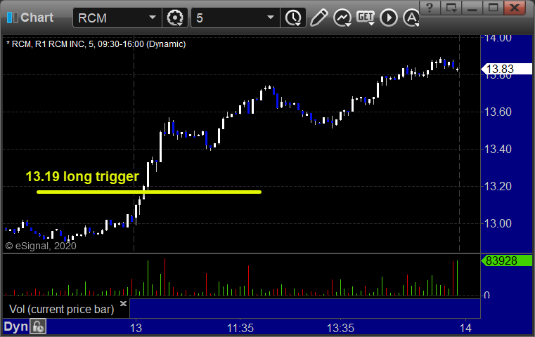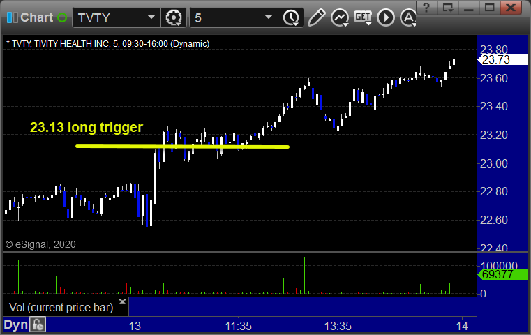 With each stock's recap, we will include a (with market support) or (without market support) tag, designating whether the trade triggered with or without market directional support at the time. Anything in the first five minutes will be considered WITHOUT market support because market direction cannot be determined that early. ETF calls do not require market support, and are thus either winners or losers.