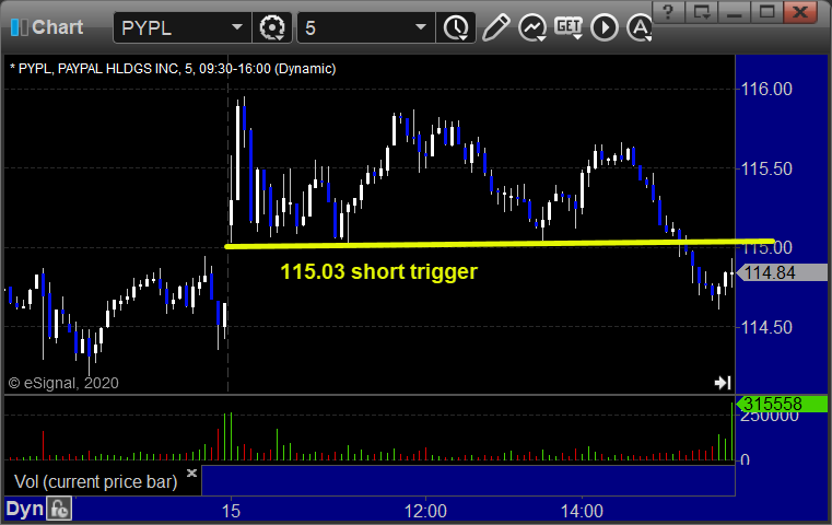 PYPL triggered short (with market support) and worked a little, ran out of time: