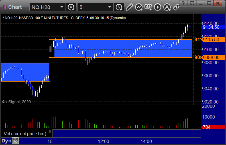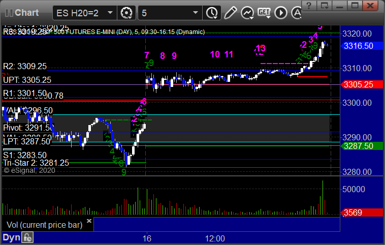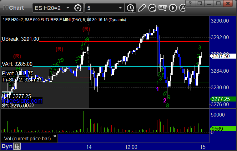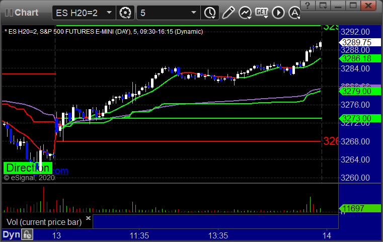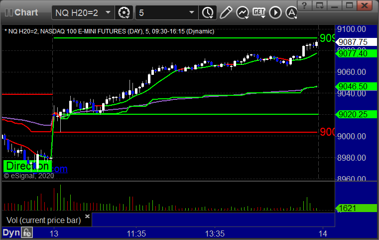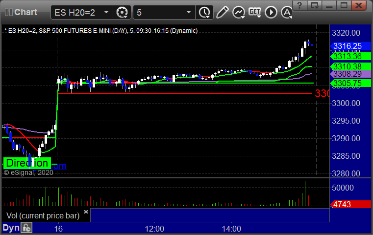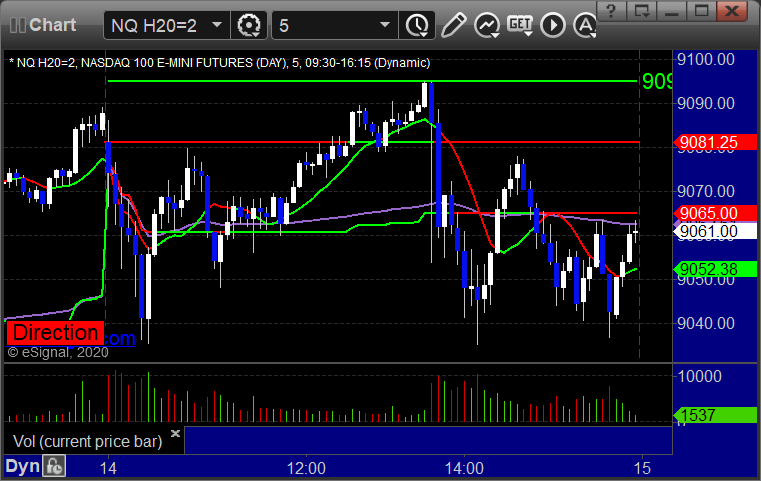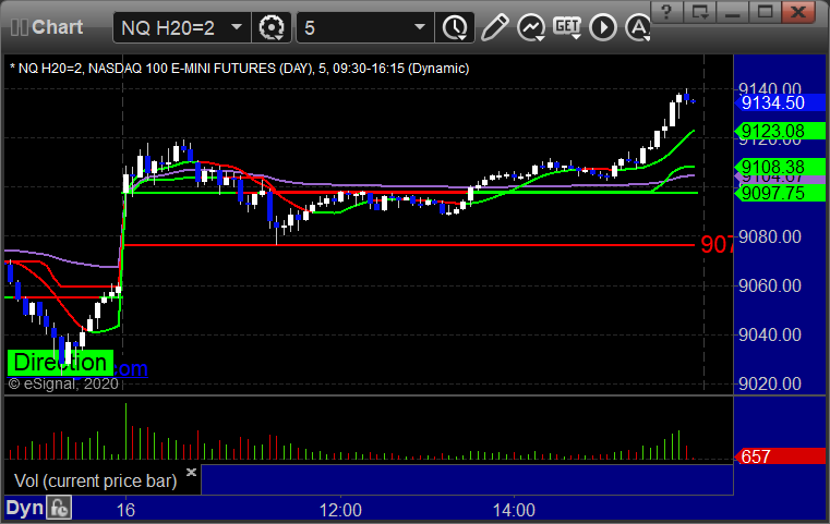 As usual, let's start by taking a look at the ES and NQ with our market directional lines, VWAP, and Comber on the 5-minute chart from today's session: