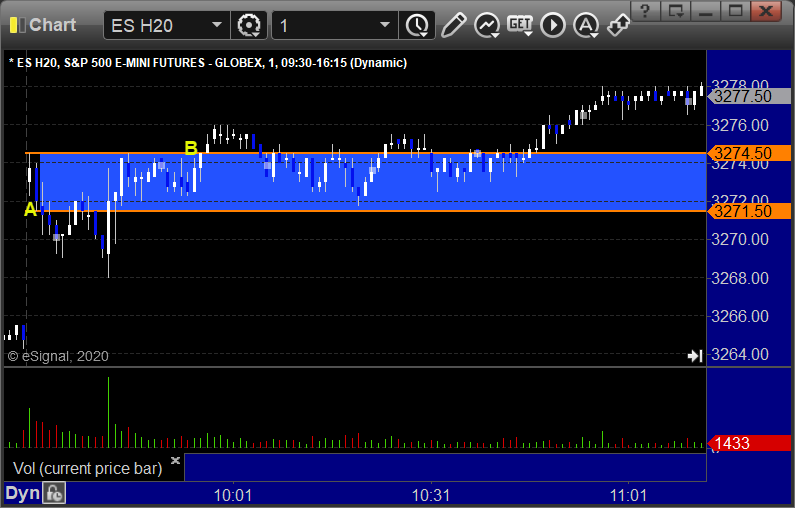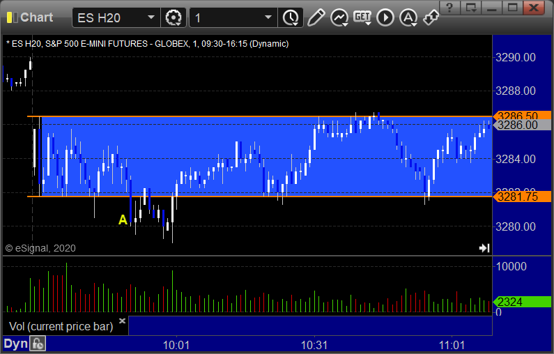 ES Opening Range Play triggered short at A and worked, triggered long at B and worked enough for a partial: