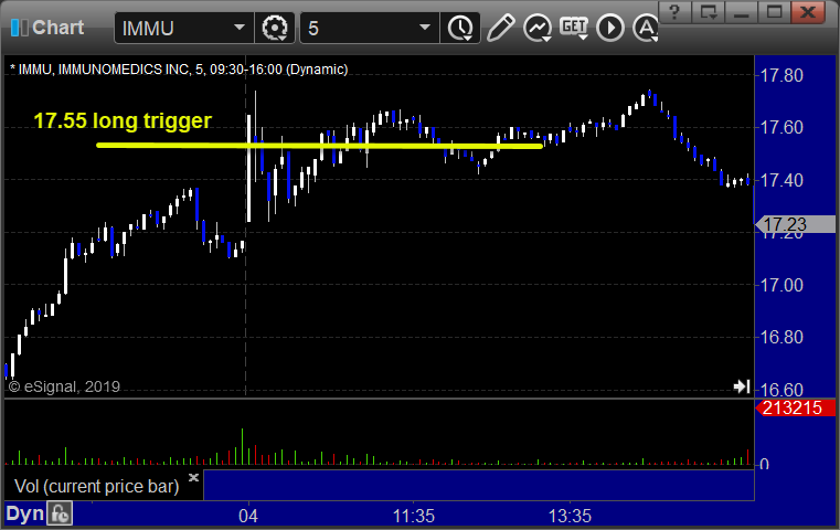 From the report, IMMU triggered long (without market support due to opening 5 minutes) and didn't go enough either way to count: