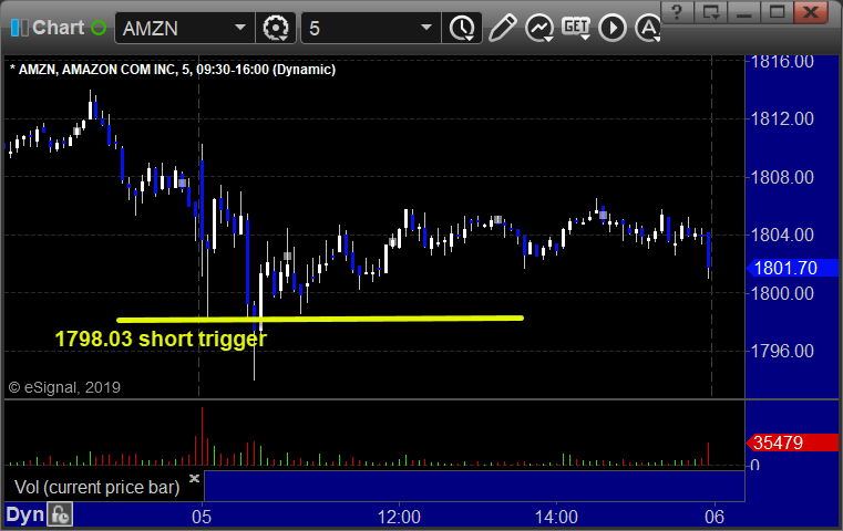 From the Messenger/Tradesight_st Twitter Feed, AMZN triggered short (with market support) and worked enough for a partial: