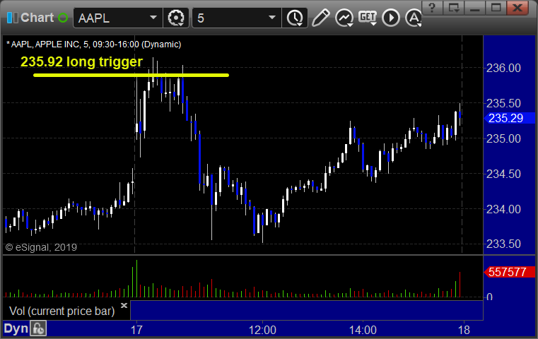 AAPL triggered long (with market support) and didn't work: