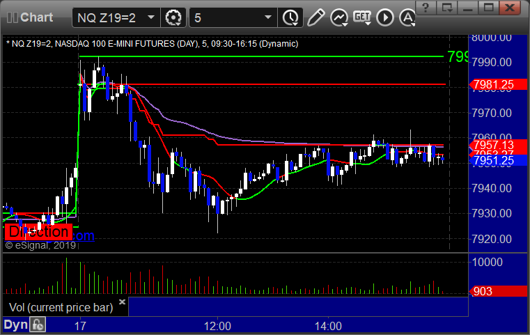 As usual, let's start by taking a look at the ES and NQ with our market directional lines, VWAP, and Comber on the 5-minute chart from today's session:
