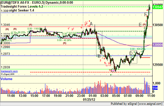 Triggered long at A and stopped. Triggered short at B and hit first target (tri-star magnet level) at C, lowered stop and stopped second half at D. Triggered long after announcement at E and hit first target at F, stop is moved up and holding over: