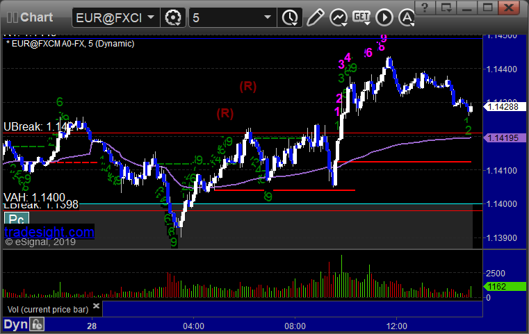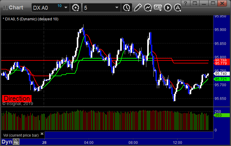 No triggers for the session at all. EURUSD never went under Pivot or over R1. Here’s a look at the US Dollar Index intraday with our market directional lines: EURUSD: PrevNext
