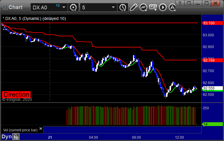 Here’s a look at the US Dollar Index intraday with our market directional lines: