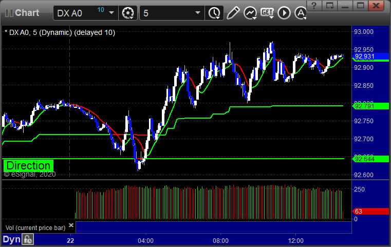 Here’s a look at the US Dollar Index intraday with our market directional lines: