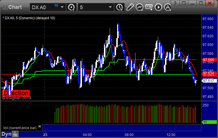 Here’s a look at the US Dollar Index intraday with our market directional lines: