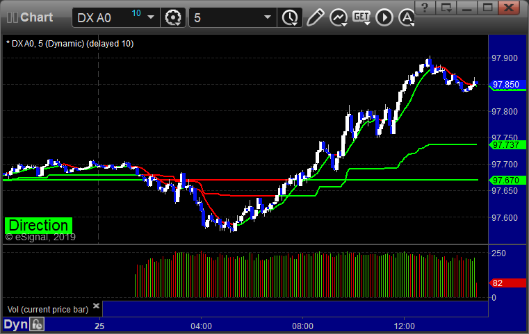 Here’s a look at the US Dollar Index intraday with our market directional lines: