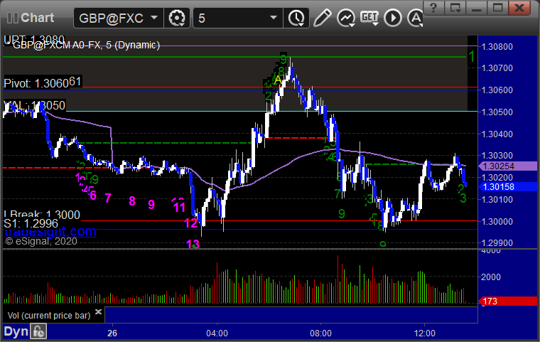 A stop out to start the week. See GBPUSD section below. Here’s a look at the US Dollar Index intraday with our market directional lines: GBPUSD: Triggered long at A and stopped: PrevNext