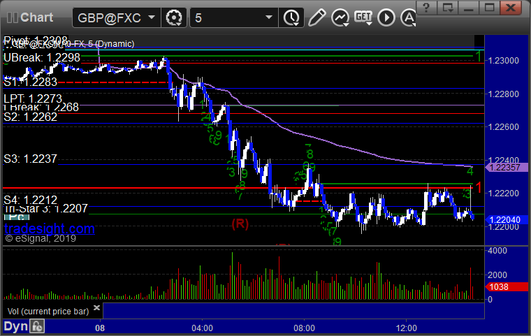 No calls for the session because the ranges from the prior day were so narrow, but the Levels spacing should be better tonight. Here’s a look at the US Dollar Index intraday with our market directional lines: GBPUSD: PrevNext