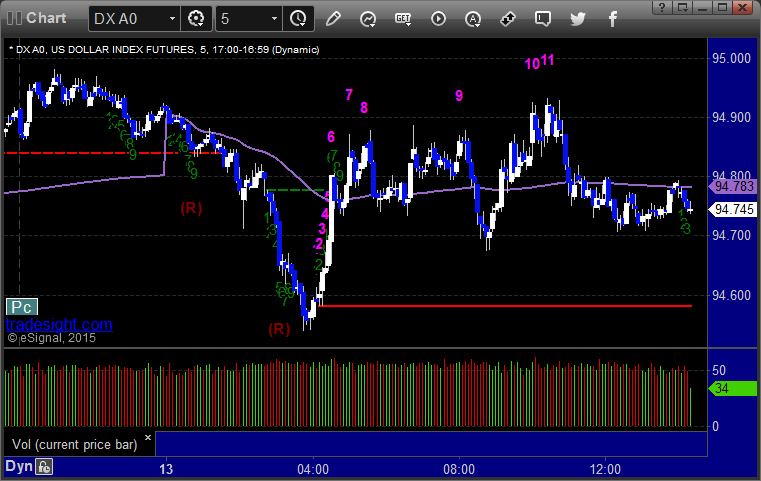 Here’s a look at the US Dollar Index intraday with our market directional lines: