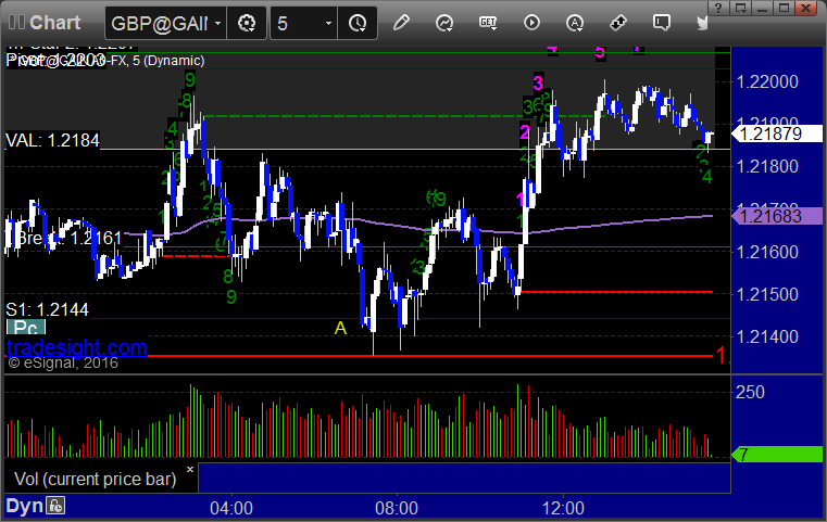 A really boring session and a loser to go with it. See GBPUSD section below. Here’s a look at the US Dollar Index intraday with our market directional lines: GBPUSD: Triggered short at A and stopped: PrevNext