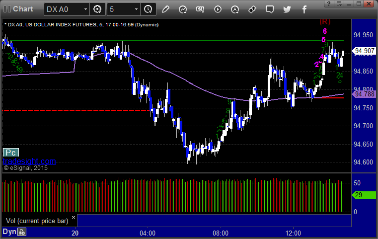 Here’s a look at the US Dollar Index intraday with our market directional lines: