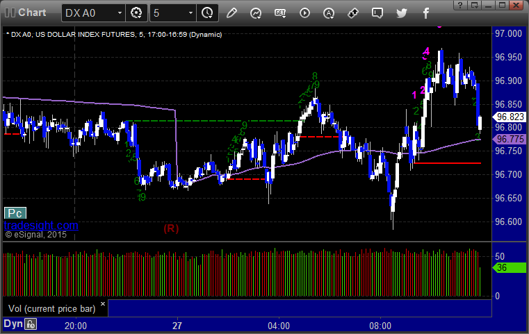 Here’s a look at the US Dollar Index intraday with our market directional lines: