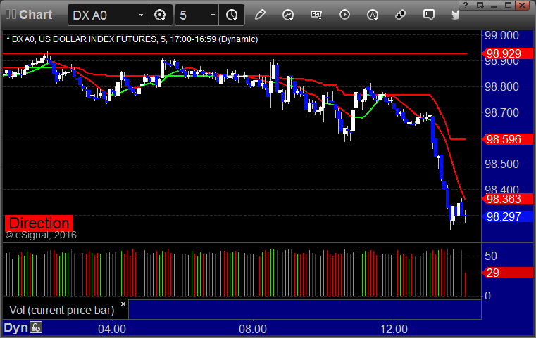 Here’s a look at the US Dollar Index intraday with our market directional lines: