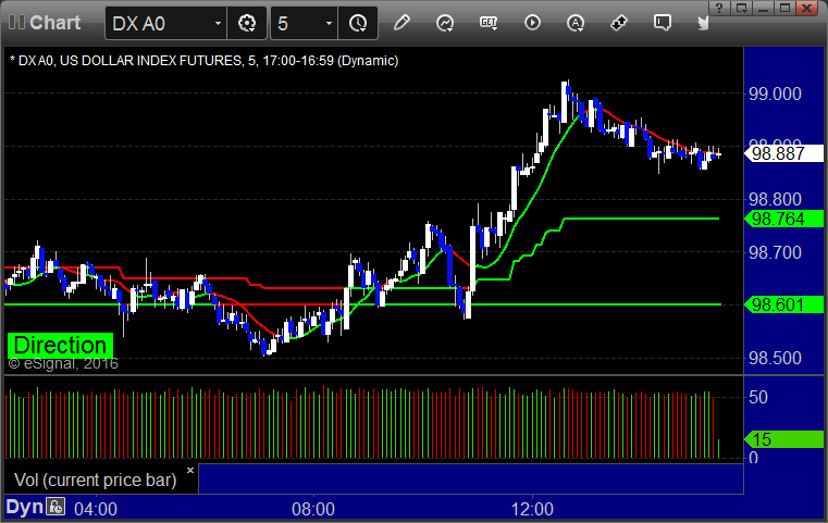 Here’s a look at the US Dollar Index intraday with our market directional lines: