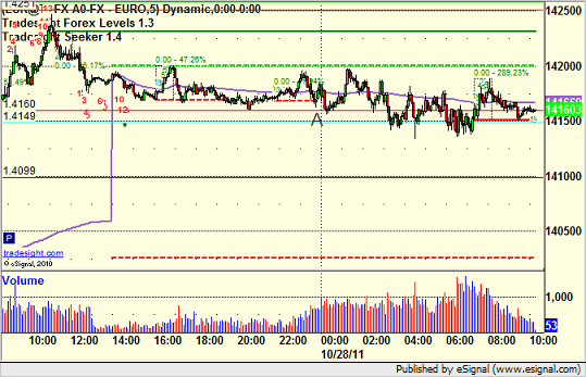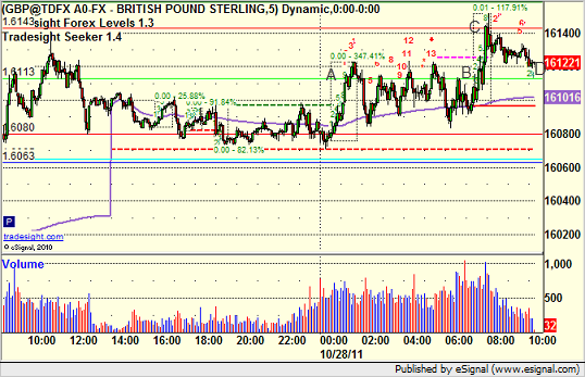 Stopped second half of prior day’s long under LBreak at A for 250 pip winner: