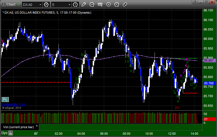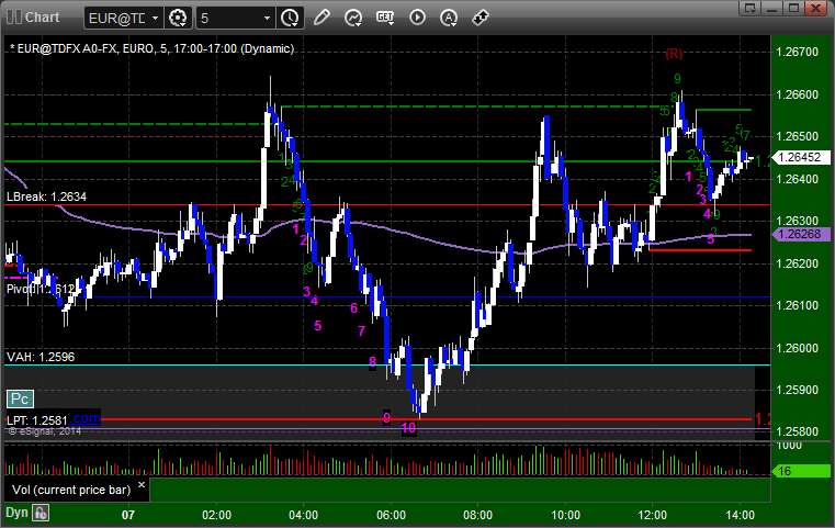 Nothing triggered for the session in a narrow, contained range. Here’s a look at the US Dollar Index intraday with our market directional lines: EURUSD: PrevNext