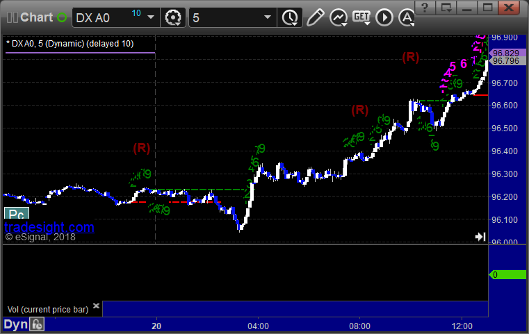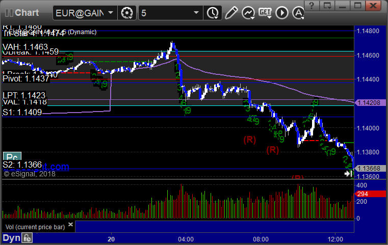 No triggers for the session and we stopped out of the second half of the prior day’s EURUSD long in the money. Here’s a look at the US Dollar Index intraday with our market directional lines: EURUSD: PrevNext
