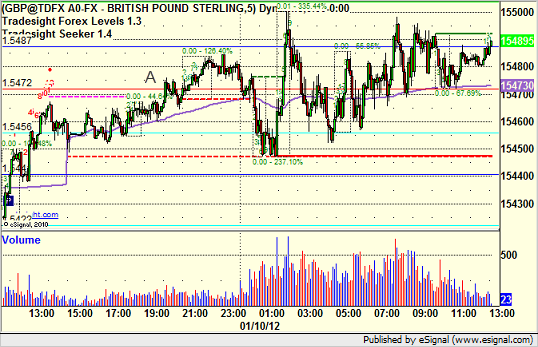 Boring day again. See GBPUSD below. New calls and Chat tonight. Here’s the US Dollar Index intraday with market directional lines: GBPUSD: Triggered long at A and stopped. Nothing else worth calling as nothing ever happened: PrevNext