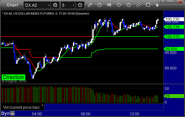 Here’s a look at the US Dollar Index intraday with our market directional lines: