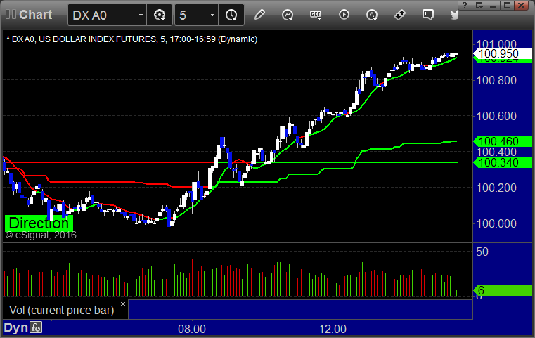 Here’s a look at the US Dollar Index intraday with our market directional lines: