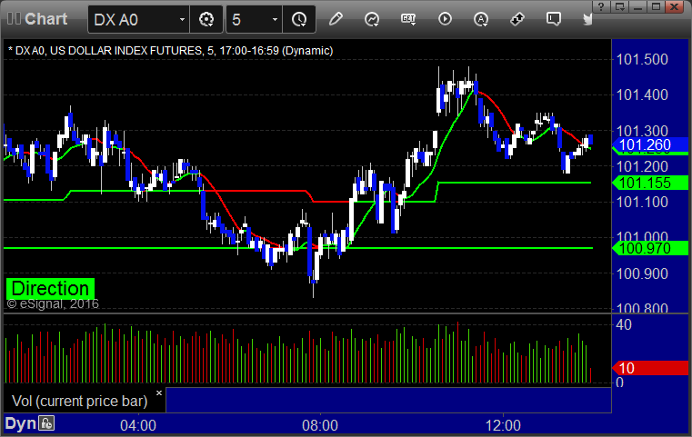 Here’s a look at the US Dollar Index intraday with our market directional lines: