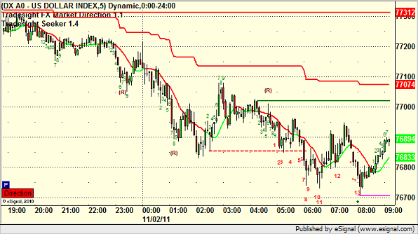 Here was the US Dollar Index intraday with market directional lines: