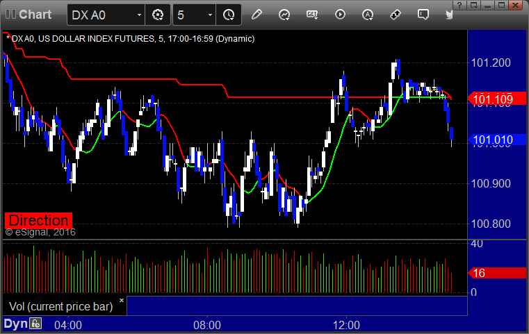 Here’s a look at the US Dollar Index intraday with our market directional lines: