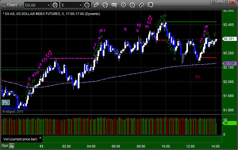 Here’s a look at the US Dollar Index intraday with our market directional lines: