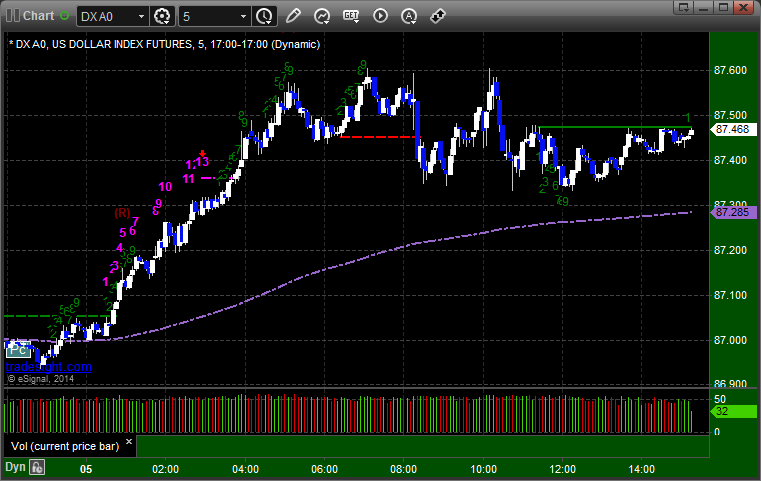 Here’s a look at the US Dollar Index intraday with our market directional lines: