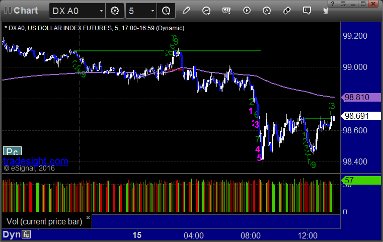 Here’s a look at the US Dollar Index intraday with our market directional lines: