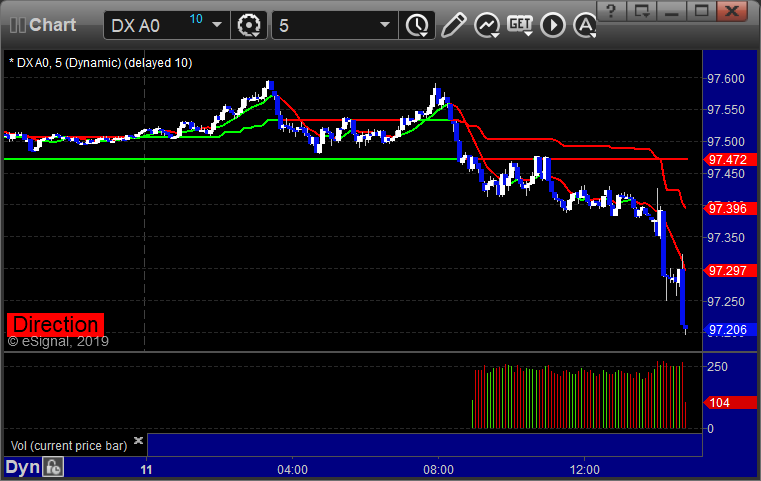 Here’s a look at the US Dollar Index intraday with our market directional lines: