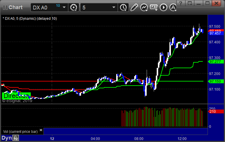 Here’s a look at the US Dollar Index intraday with our market directional lines: