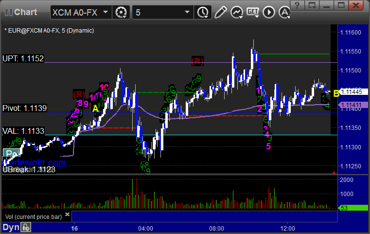 Triggered long at A and closed at end of chart for a couple of pips, not much:
