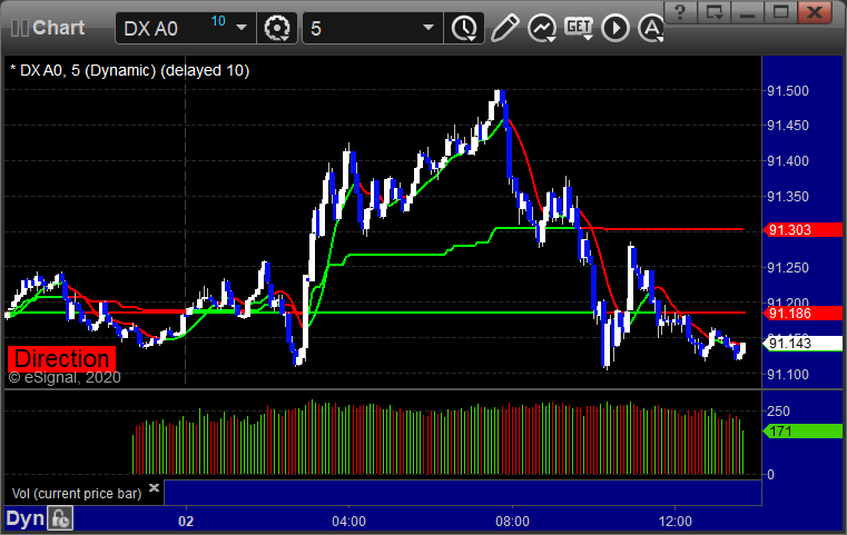 Here’s a look at the US Dollar Index intraday with our market directional lines: