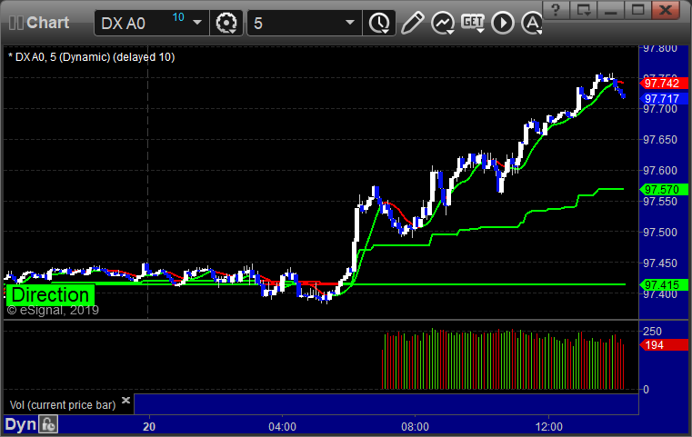 Here’s a look at the US Dollar Index intraday with our market directional lines: