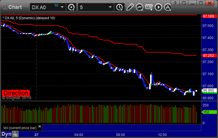 Here’s a look at the US Dollar Index intraday with our market directional lines: