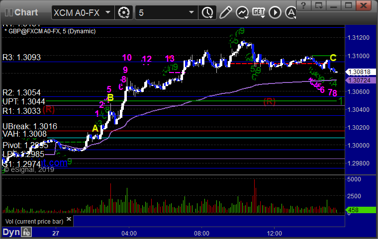 Triggered long at A, hit first target at B, closed second half at C for 80 pips for end of week: