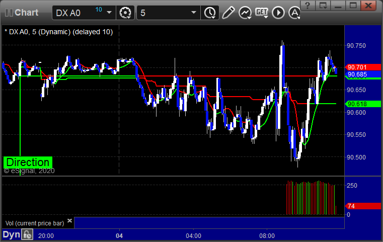 Here’s a look at the US Dollar Index intraday with our market directional lines: