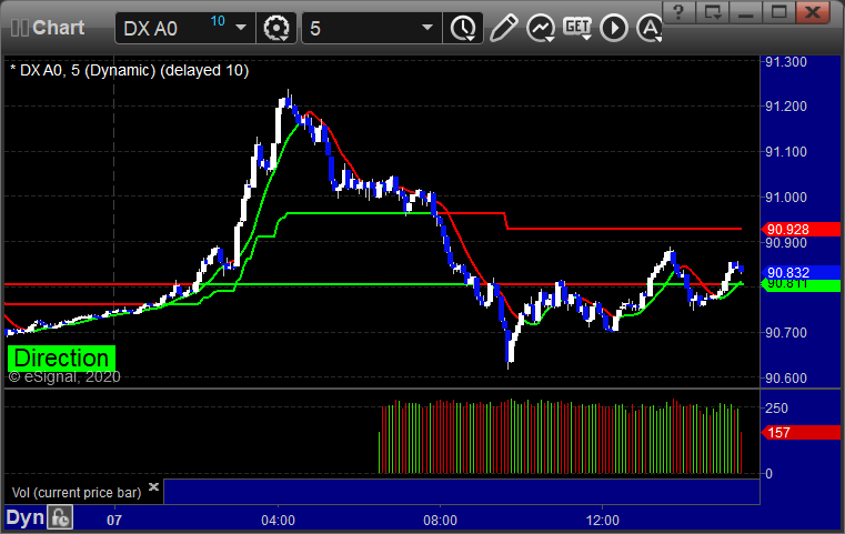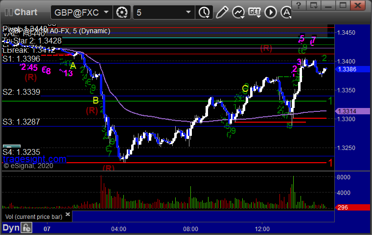 A winner to start the week. See GBPUSD section below. Here’s a look at the US Dollar Index intraday with our market directional lines: GBPUSD: Triggered short at A, hit first target at B, stopped second half in the money at C: PrevNext