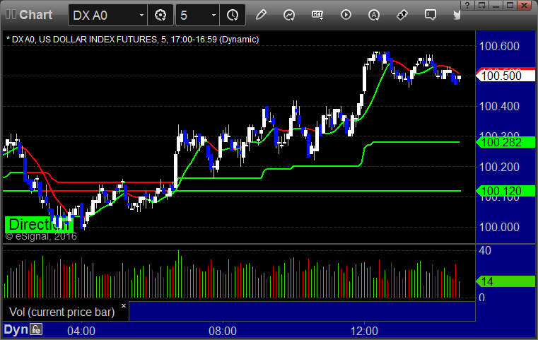 Here’s a look at the US Dollar Index intraday with our market directional lines: