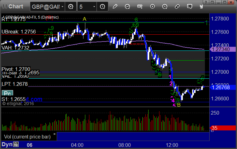 A break over R1 was our long entry, and it hit at A but never triggered. A break under S1 was our short entry, and it hit at B without triggering: