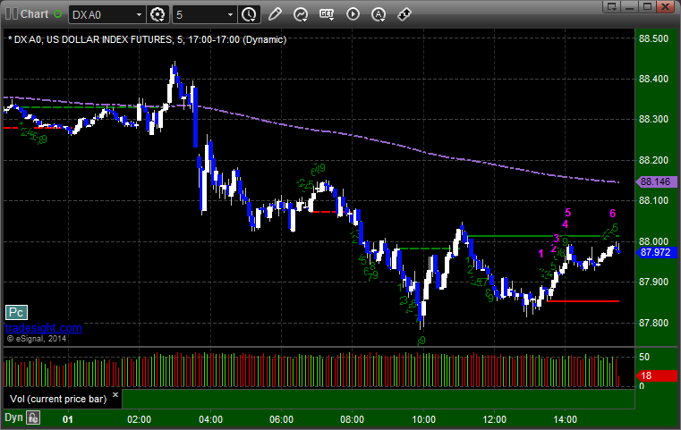 Here’s a look at the US Dollar Index intraday with our market directional lines: