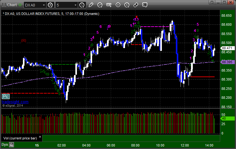 Here’s a look at the US Dollar Index intraday with our market directional lines: