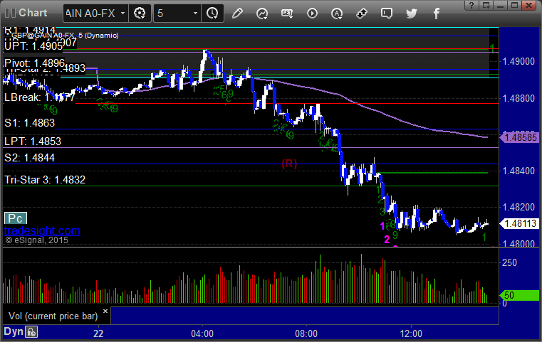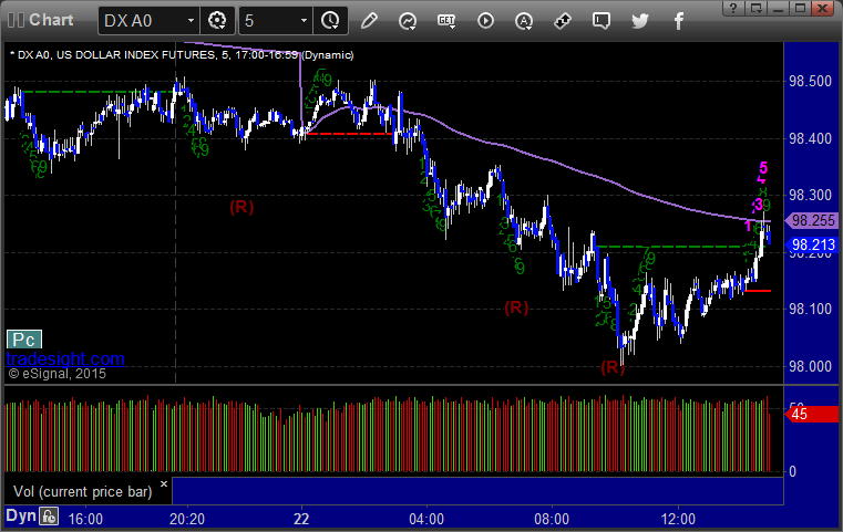 I didn’t make any calls for the session because the Levels were so bunched, but the GBPUSD short under S1 would have worked. Here’s a look at the US Dollar Index intraday with our market directional lines: GBPUSD: PrevNext