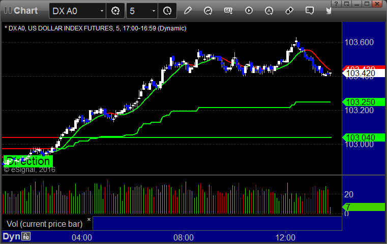 Here’s a look at the US Dollar Index intraday with our market directional lines: